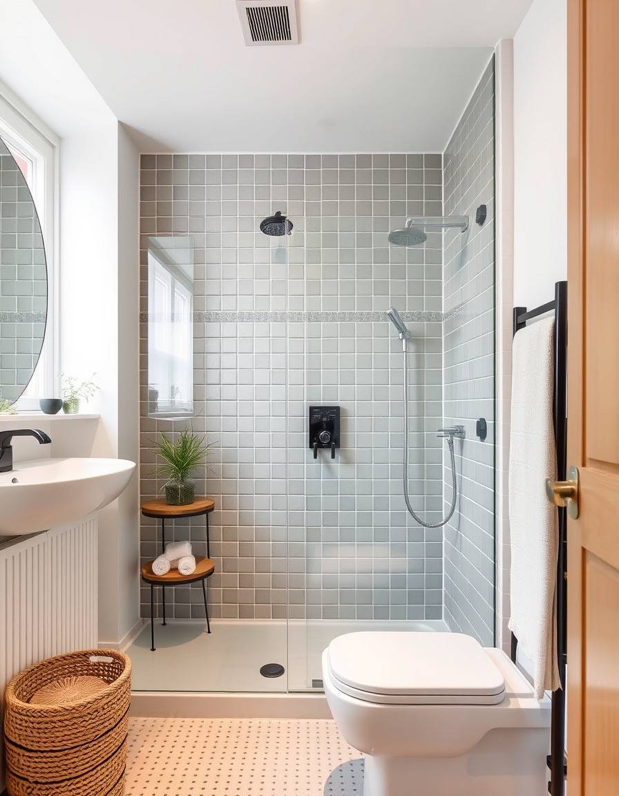 Jos kylpyhuoneessasi on paljon yksityiskohtia, kuten värikkäitä laattoja tai koristeellisia kalusteita, yksinkertainen lasinen suihkuseinä voi olla paras valinta. Se ei kilpaile huomiosta muiden elementtien kanssa vaan antaa niiden loistaa.